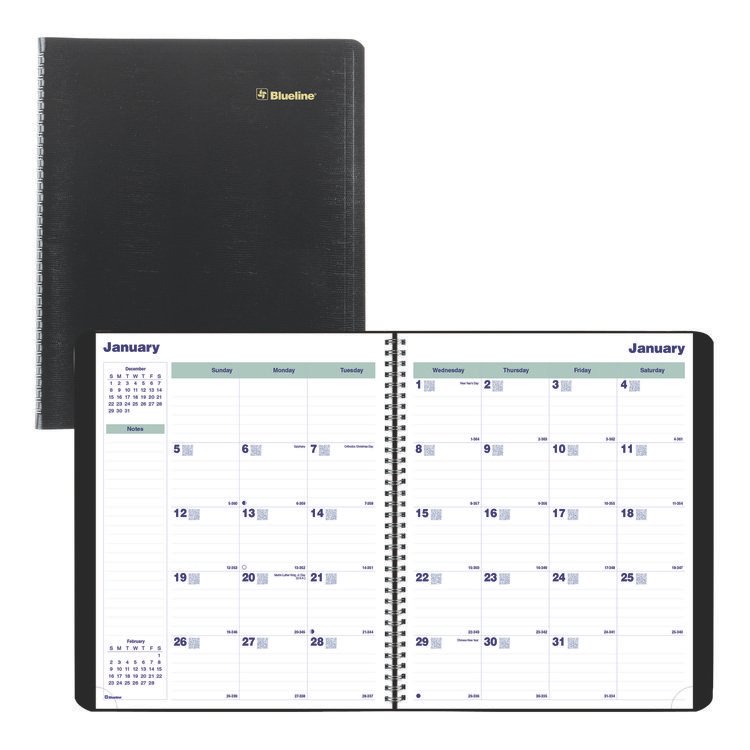 Blueline Academic Monthly Planner, 11 x 8.5, Black Cover, 14-Month: July 2025 to Aug 2026 (REDCA701BLK)