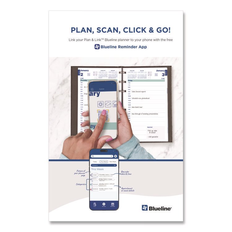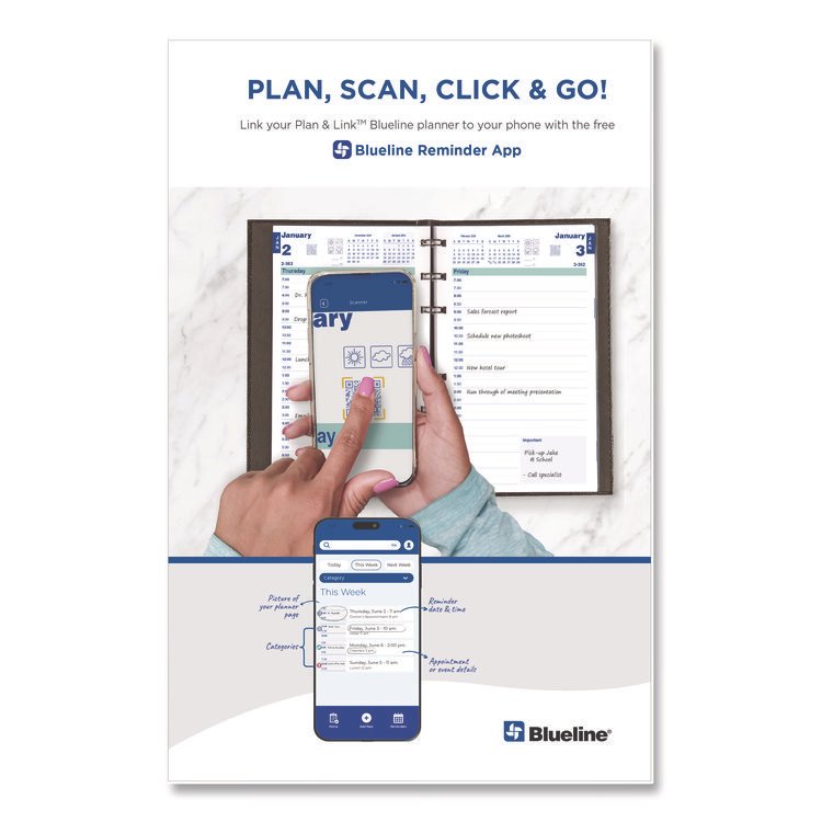 Blueline Plan and Link Weekly Planner, 8″ x 5″, Black Cover, 12-Month (Jan to Dec): 2026 (REDC507581T)