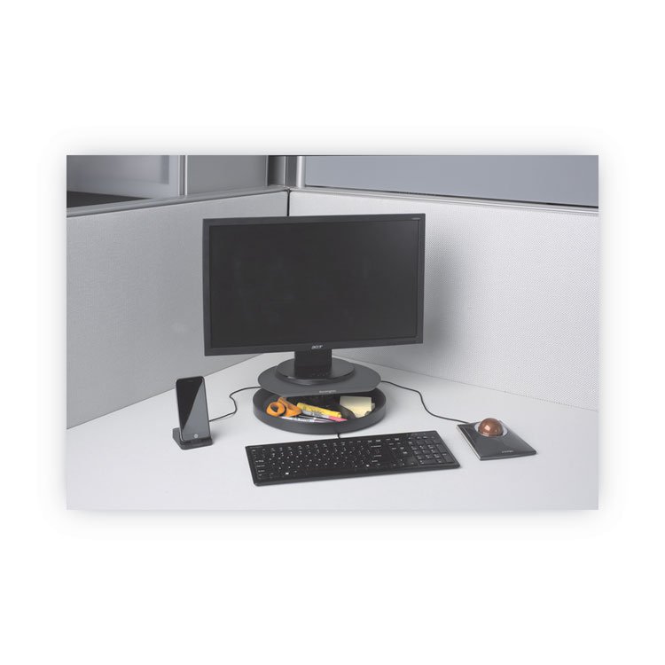 Kensington Spin2 Monitor Stand with SmartFit, 12.6″ x 12.6″ x 2.25″ to 3.5″, Black, Supports 40 lbs (KMW52787)
