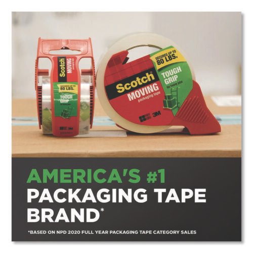 Scotch Tough Grip Moving Packaging Tape with Dispenser, 3″ Core, 1.88″ x 38.2 yds, Clear, 2/Pack (MMM3500S21RD)