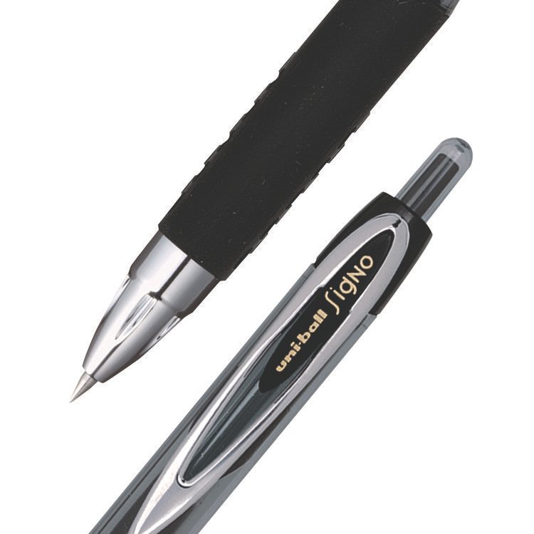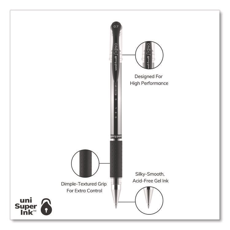 uniball Signo GRIP Gel Pen, Stick, Medium 0.7 mm, Black Ink, Clear/Black/Silver Barrel, Dozen (UBC65450)