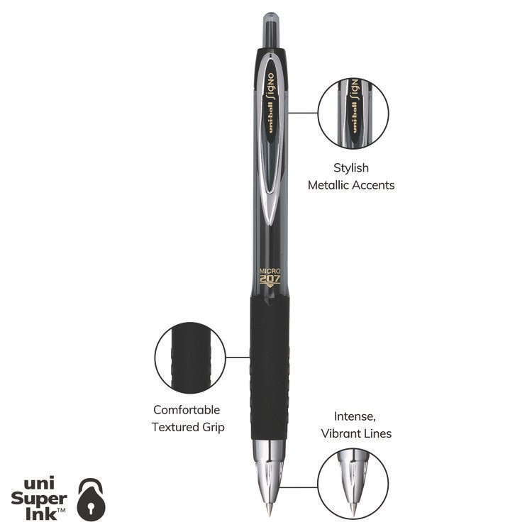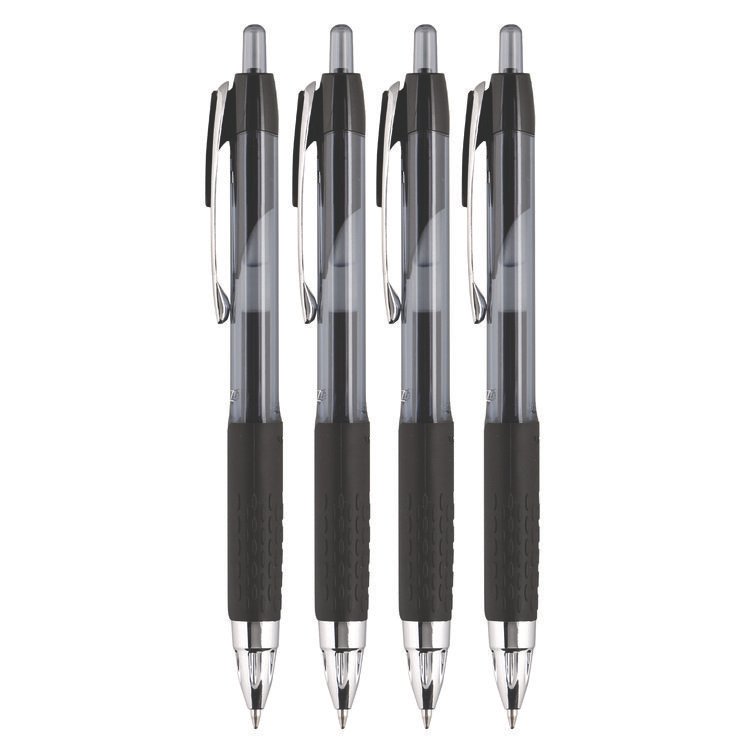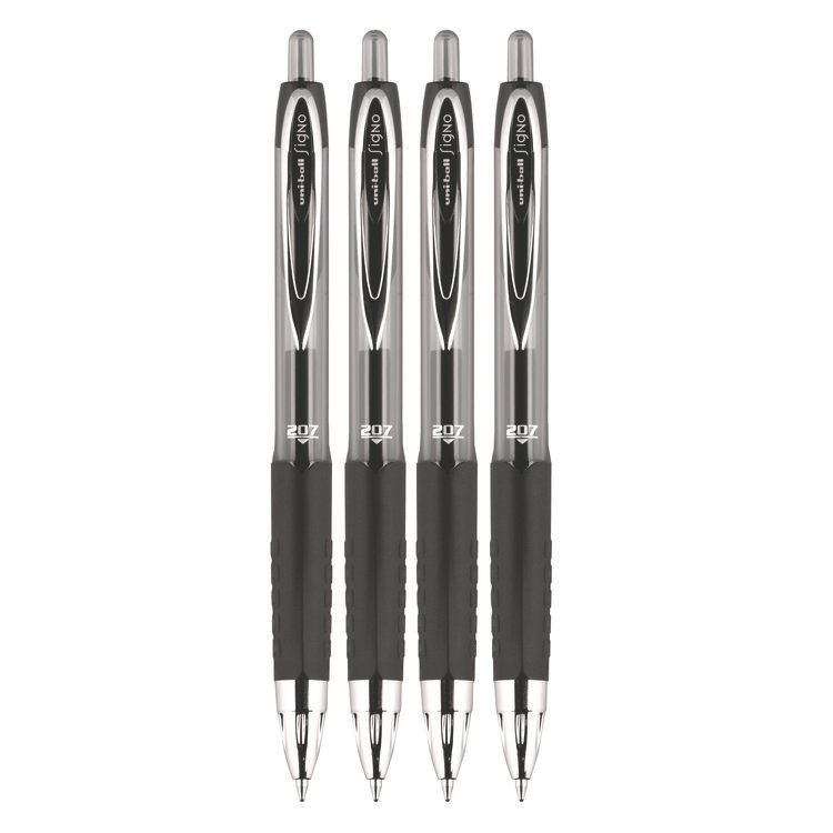 uniball Signo 207 Gel Pen, Retractable, Fine 0.5 mm, Black Ink, Smoke/Black Barrel, 4/Pack (UBC61270)