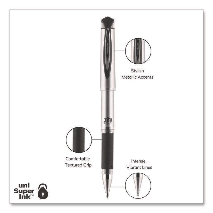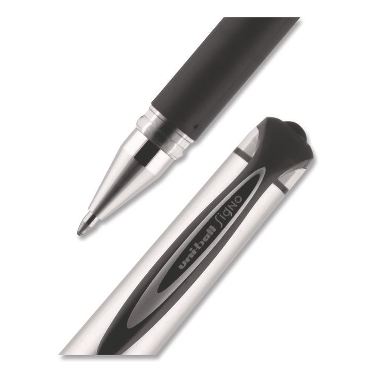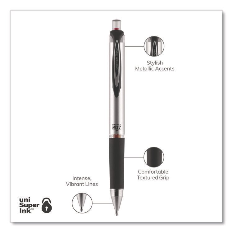 uniball 207 Impact Gel Pen, Stick, Bold 1 mm, Black Ink, Silver/Black Barrel (UBC65800)