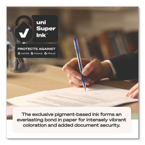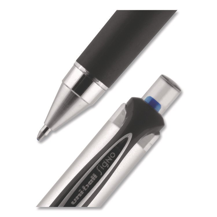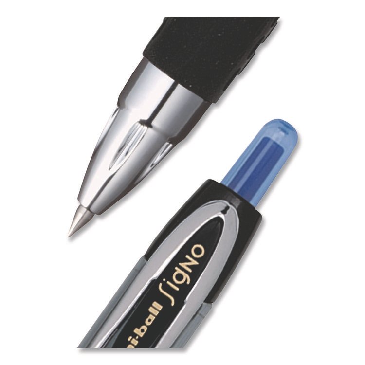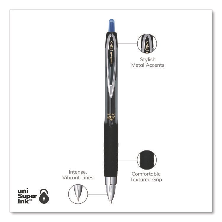 uniball Signo 207 Gel Pen, Retractable, Fine 0.5 mm, Blue Ink, Smoke/Black/Blue Barrel, Dozen (UBC61256)