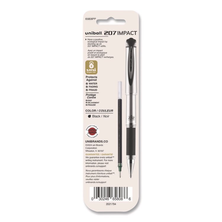 uniball 207 Impact Gel Stick Pen Refills, Bold 1 mm Conical Tip, Black Ink, 2/Pack (UBC65808)
