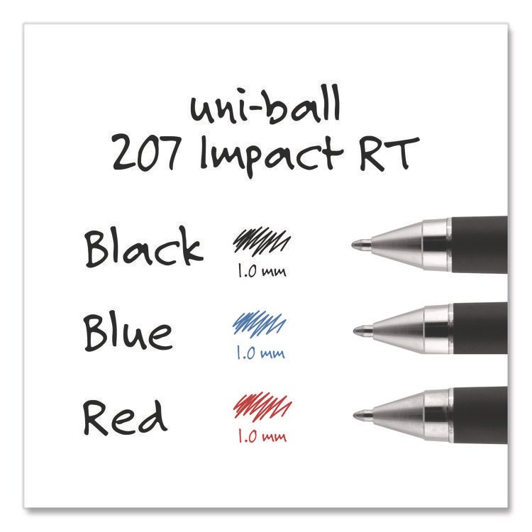 uniball 207 Impact Gel Pen, Retractable, Bold 1 mm, Black Ink, Black Barrel (UBC65870)