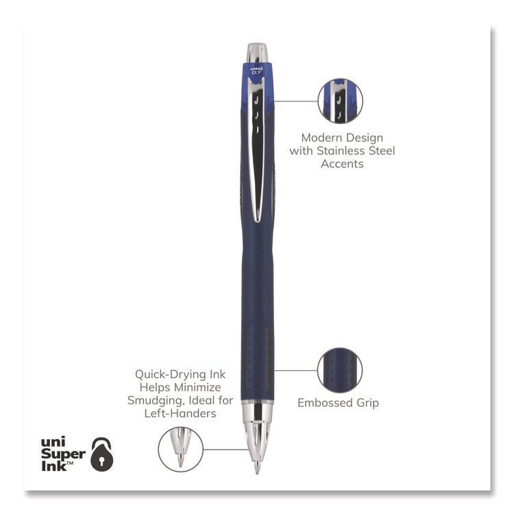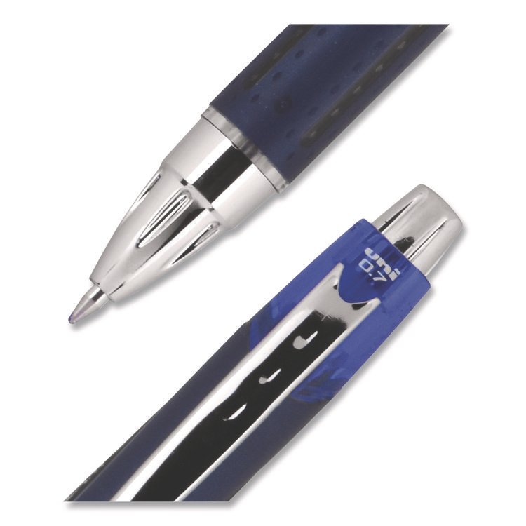 uniball Jetstream Hybrid Gel Pen, Retractable, Fine 0.7 mm, Blue Ink, Blue/Silver Barrel (UBC62153)