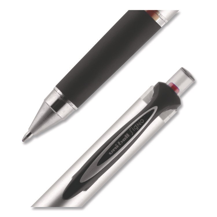 uniball Signo GRIP Gel Pen, Stick, Medium 0.7 mm, Red Ink, Clear/Red/Silver Barrel, Dozen (UBC65452)