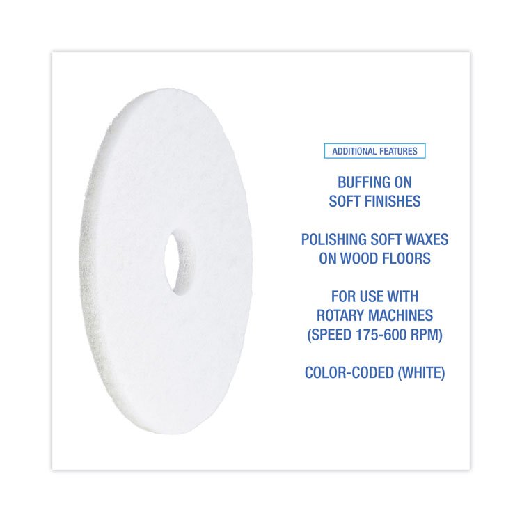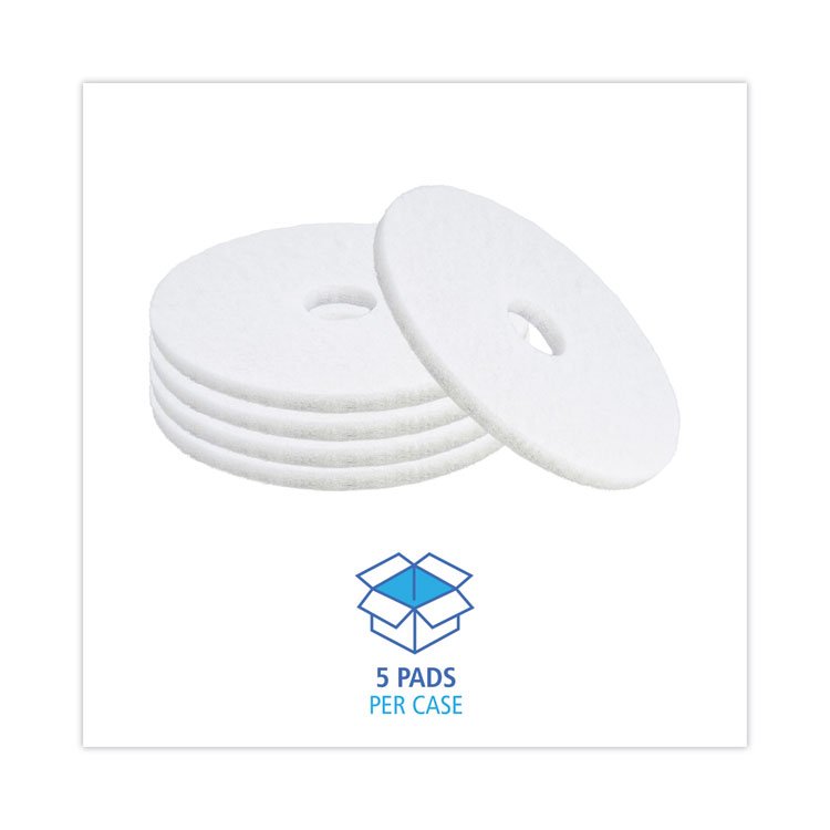 Boardwalk Polishing Floor Pads, 19″ Diameter, White, 5/Carton (BWK4019WHI)