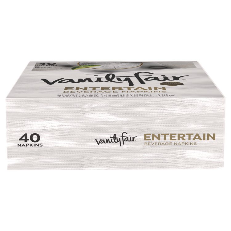 Vanity Fair Entertain Beverage Napkins, 2-Ply, 9.8 x 9.8, White, 40/Pack, 12 Packs/Carton (VTF35134)