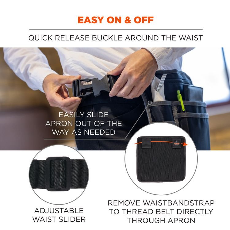 ergodyne Arsenal 5716 Server Apron Pouch with Pockets, 5 Compartments, 11 x 10, Nylon, Black (EGO13719)