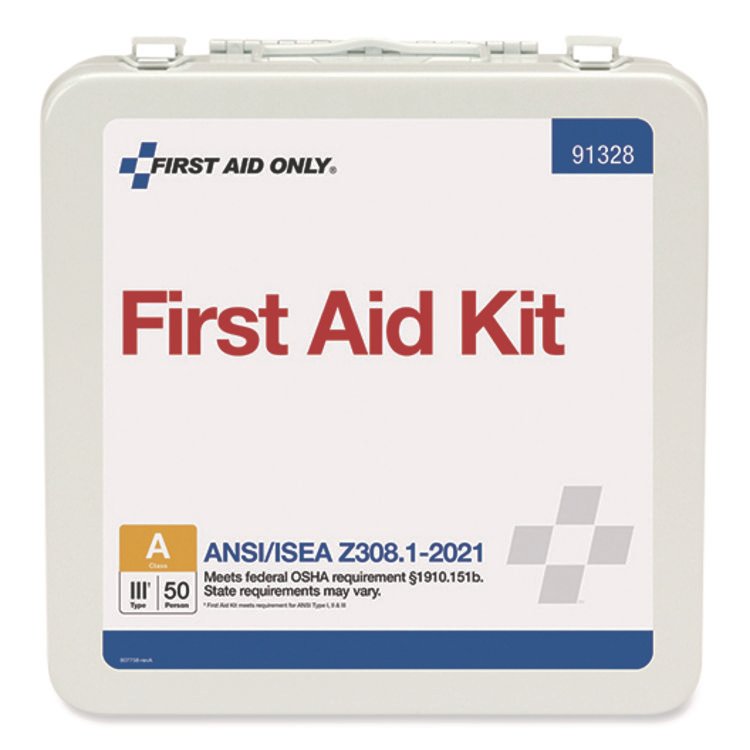 First Aid Only ANSI 2021 Type III First Aid Kit for 50 People, 184 Pieces, Metal Case (FAO91328)
