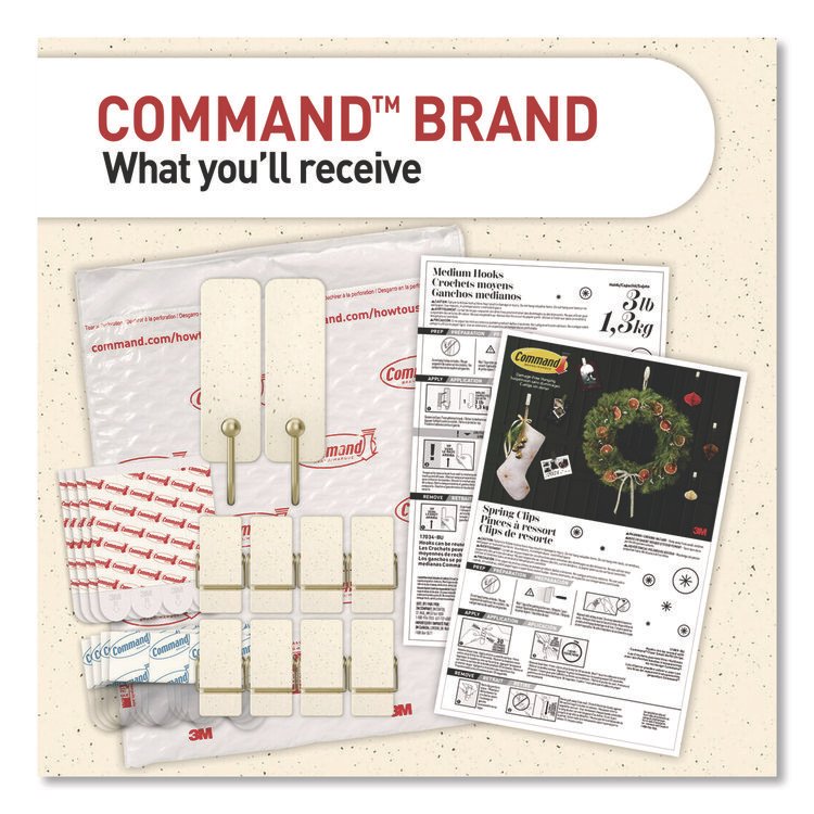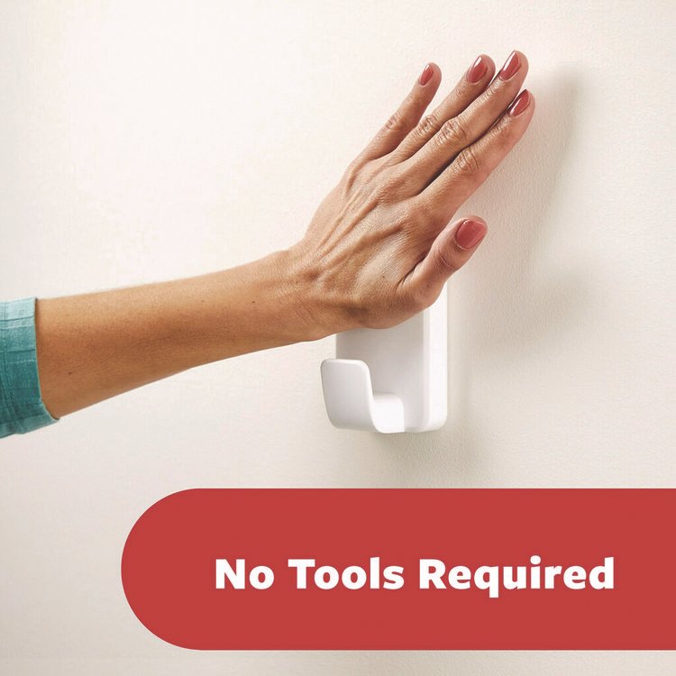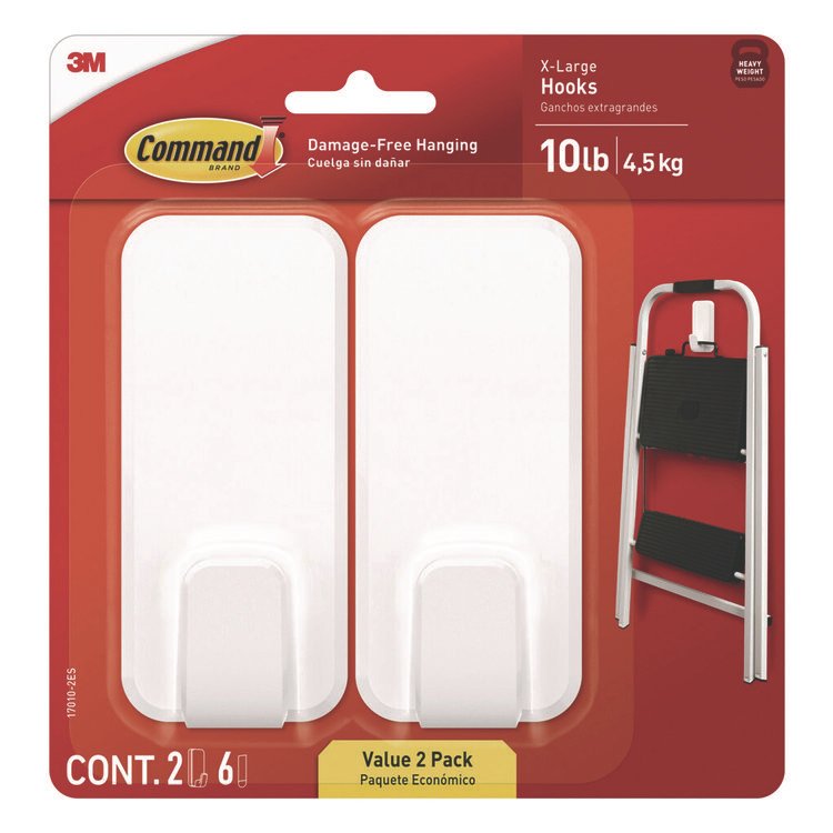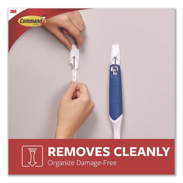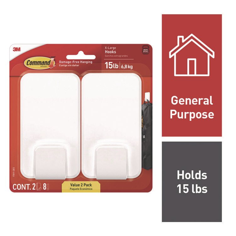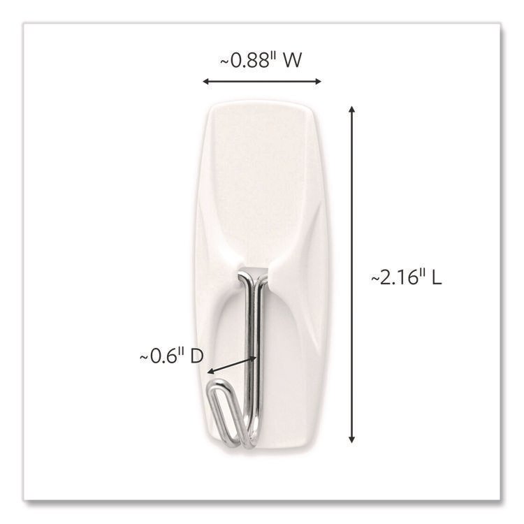 General General Purpose Hooks, Medium, Plastic, White, 3 lb Capacity, 2 Hooks and 4 Strips/Pack (MMM17001ES)