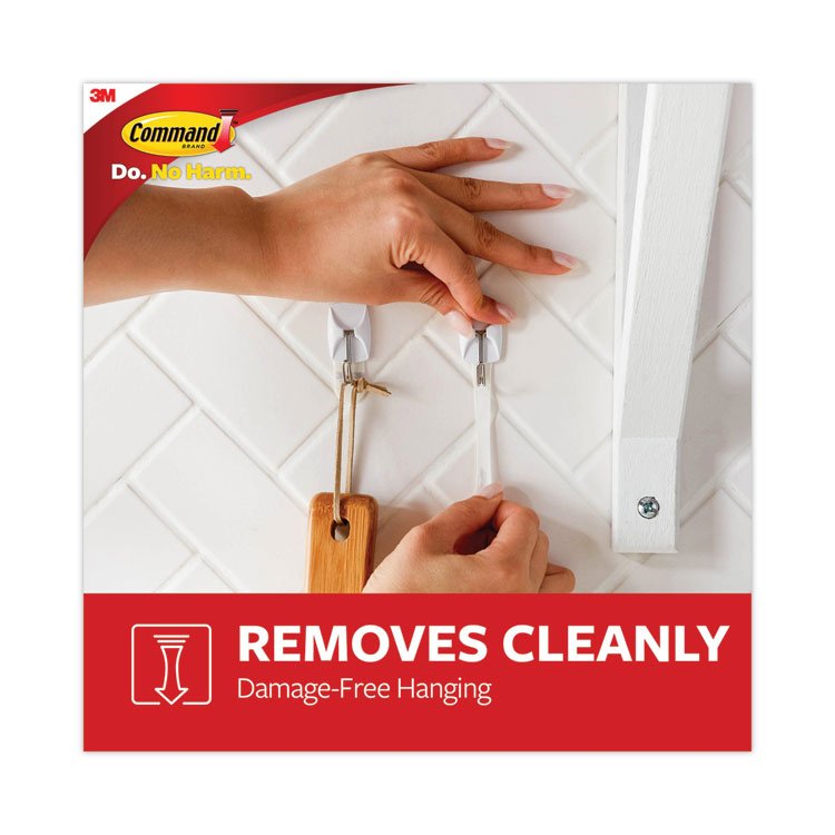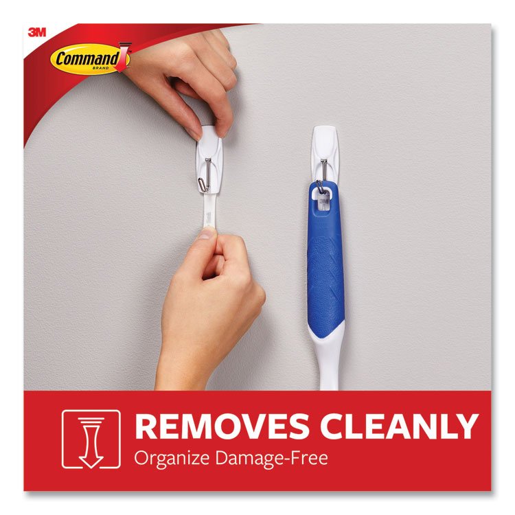 - Command™ Damage-Free Hanging—holds strongly, removes cleanly. Dress up your walls with sleek and stylish hooks. From sophisticated to fun and playful, Command™ Decorative Hooks give you options for every room in your home. And forget about nails, screws and tacks. These hooks are easy to hang, support a surprising amount of weight and keep your surfaces looking beautiful. The included adhesive strips stick to many surfaces: tile, wood, metal, painted surfaces and more, but they also remove cleanly, leaving no holes, marks, sticky residue or damage behind. Remove and reuse your hooks again and again!